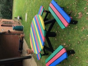 | 2023 washing machine, to save on laundry costs | Recycled colourful benches for campsite and campfire circle |